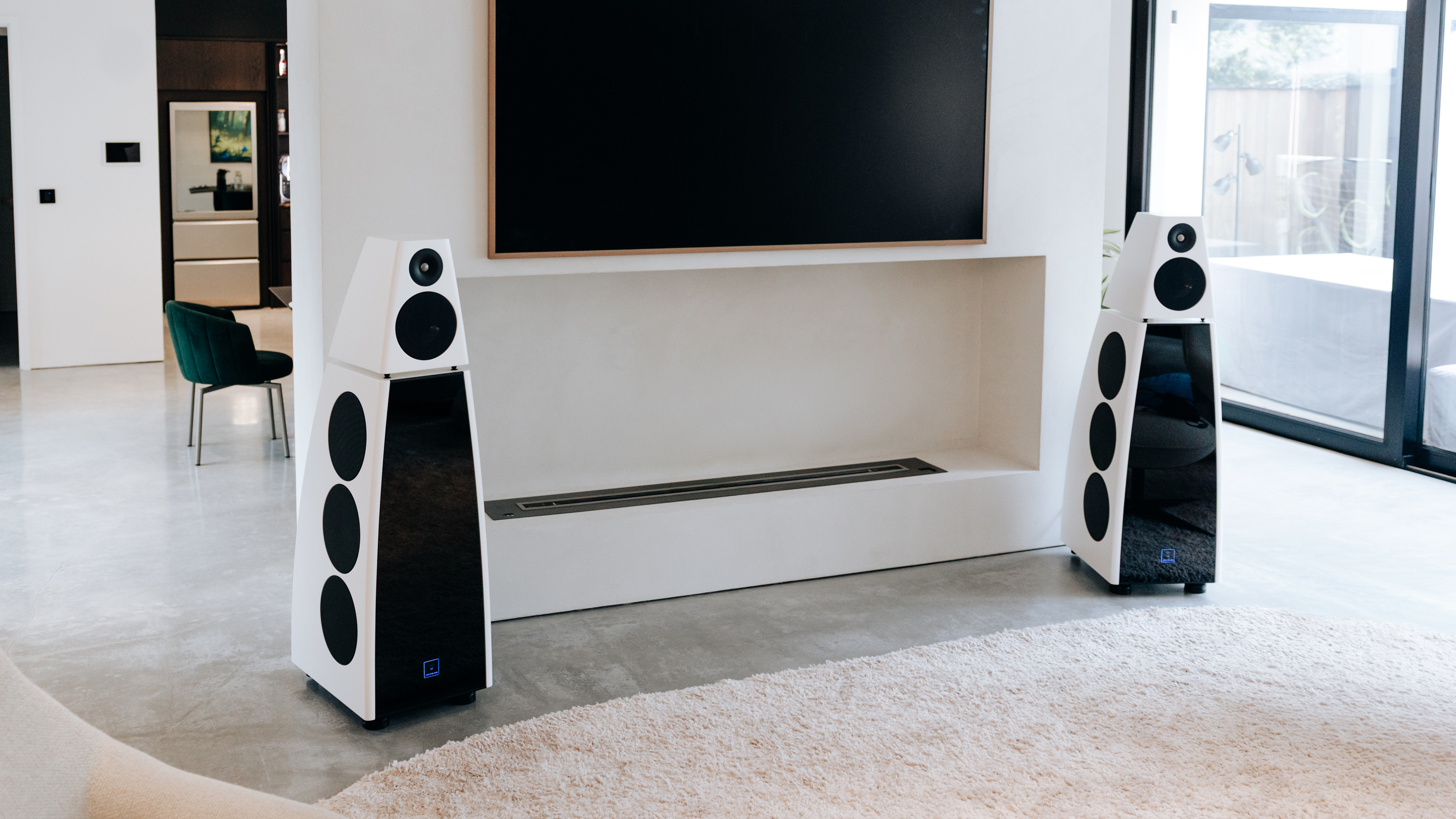 The Meridian experience extends throughout the home. In the living room, a pair of Meridian DSP8000 XE loudspeakers deliver the same premium audio quality for everyday listening, while Meridian in-wall speakers are seamlessly integrated into hallways, bedrooms, and the gym.
